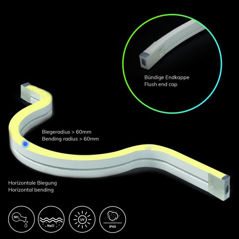 LED NeonPRO930 Custom Flexband B04H08, 24V DC, 10W, IP67, 3000K, 5m Rolle, 180 LED/m, inkl. Clips