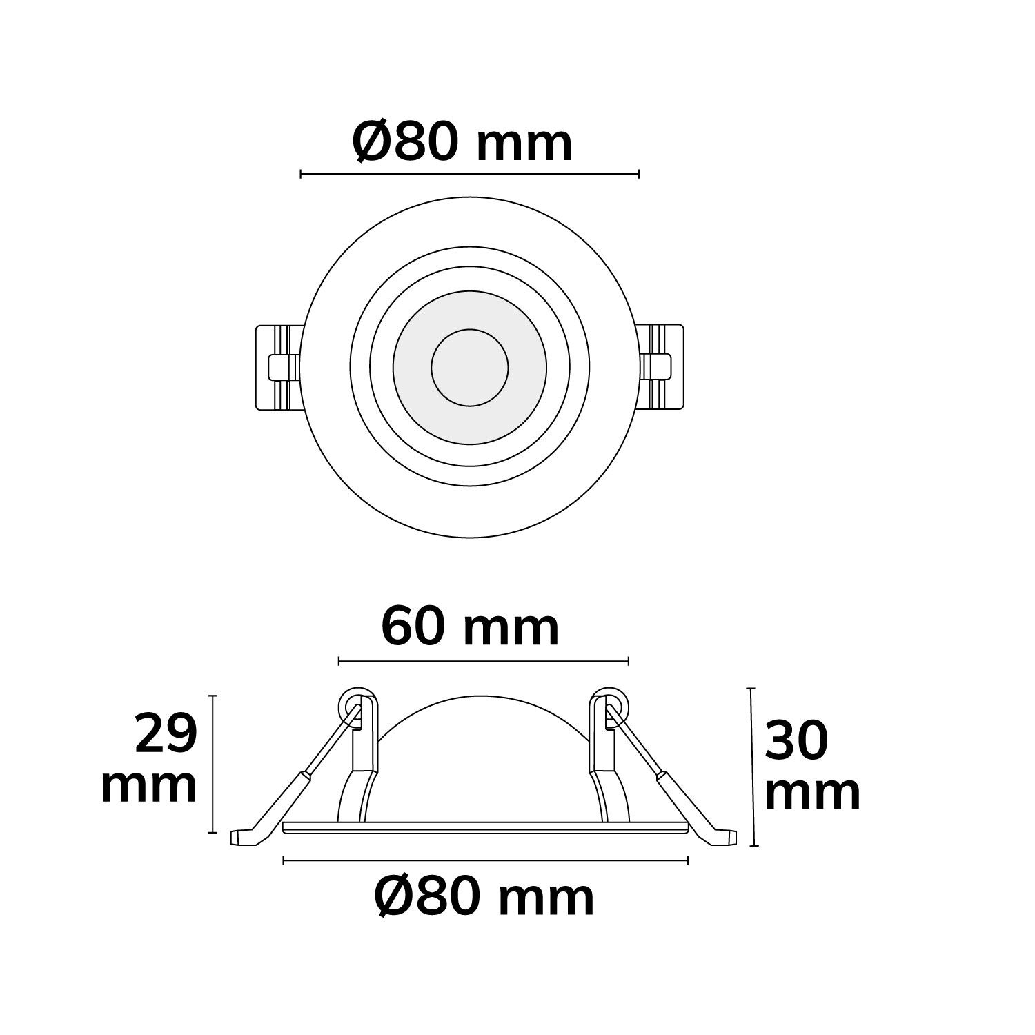 - Abmessungen Leuchte: Außendurchmesser: 80mm Einbautiefe: 32mm