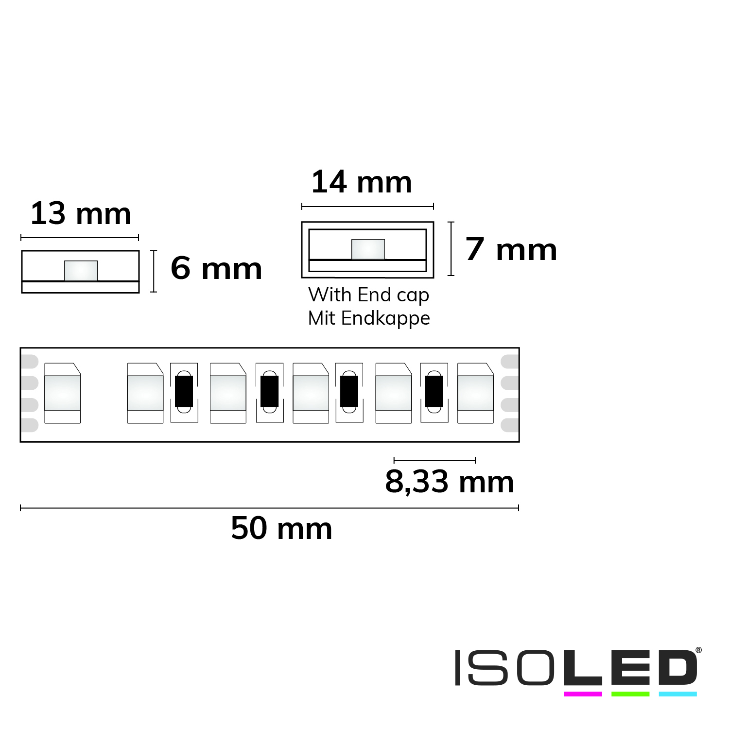 - Besonderheiten: Trennstelle: 50mm mit je 6 SMD | Pitch (Chip Mitte-Mitte): 8,33mm | 1 Rolle = 5m | max. Flexbandlänge pro Einspeisung: 5m | Längentoleranz + Wärmeausdehnung: 1% | inkl. 3M 300LSE Klebeband | Untergrund vor dem Ankleben reinigen und entfetten! Nicht wieder ablösen! | Silikon-Verguß | inkl. Endkappen, Montagebügel und Dichtstoff
